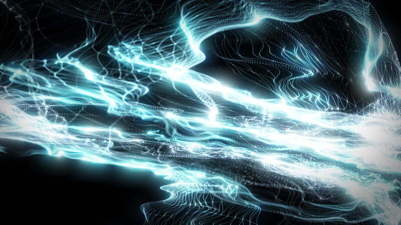 Abstract digital technological dynamic particle waves against the backdrop of moving light, data flow, or connection visualization, cyber technology. 3D rendering. Pro Video
