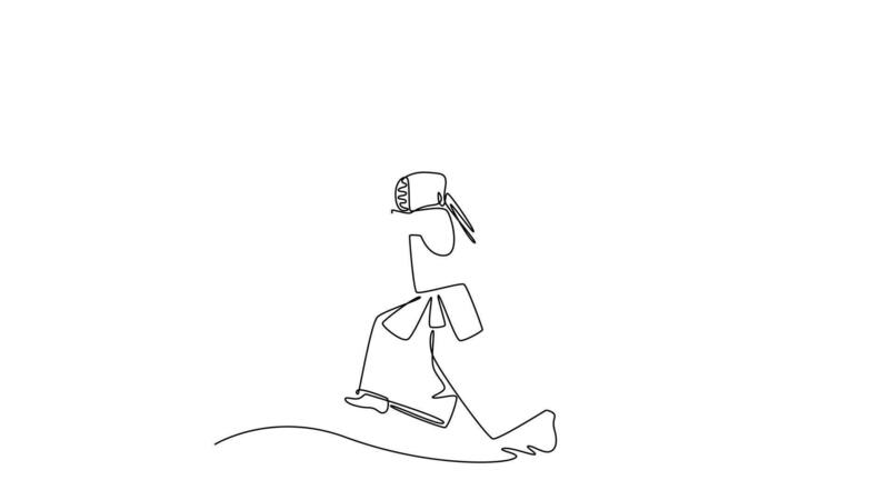 Animated self drawing continuous line draw man Kendo athlete in full bogu armor running and preparing powerful overhead strike with bamboo sword. Dynamic action sports. Full length one line animation Pro Video