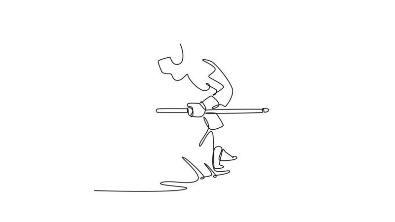 Animated self drawing of continuous line draw young active man Kendo athlete in full bogu armor executing crouched forward movement with bamboo sword held horizontally. Full length one line animation Pro Video