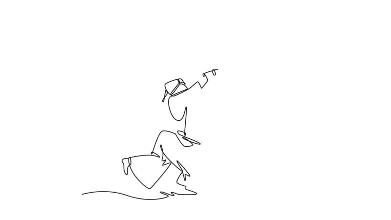 Animated self drawing of continuous line draw man Kendo athlete in full bogu armor running and leaping forward with bamboo sword held high. Dynamic action, discipline. Full length one line animation Pro Video