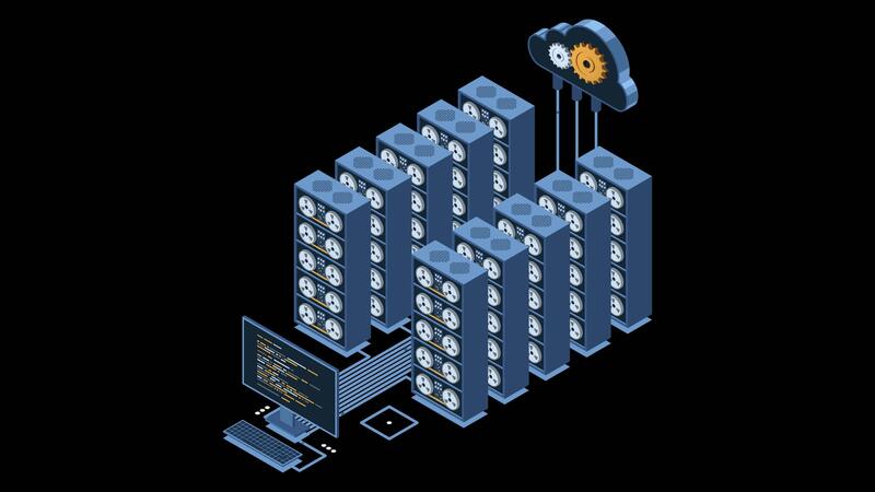 Isometric monitoring big data animation. Data transmission technology. Online hosting technology concept. Isometric technology. Transparent background with alpha channel. Free Video