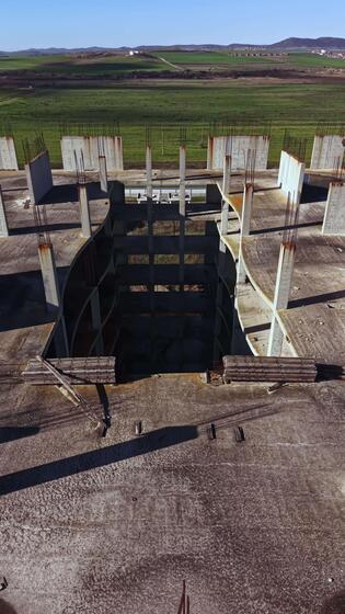 Exploring the quiet deterioration of a half-built structure in an open field at dawn Pro Video