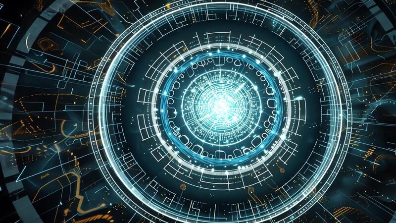 Mesmerizing digital vortex with intricate geometric patterns and glowing blue light, showcasing depth and innovation in futuristic technology. Free Video