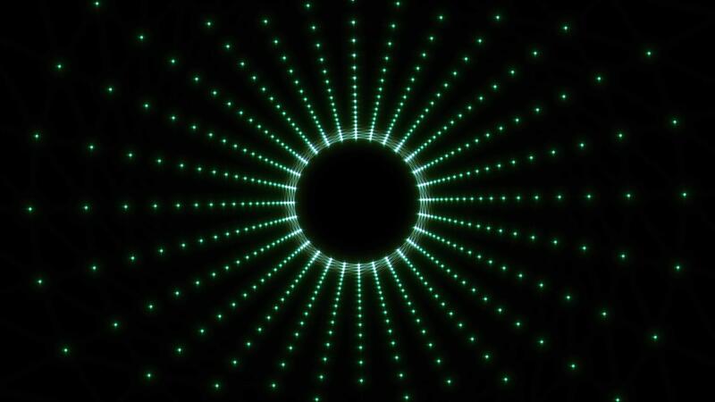 Glowing green digital rays forming a circular tunnel. Sci-fi geometric pattern with radiant dots expanding in perspective, symbolizing technology, data flow, and virtual energy motion Pro Video