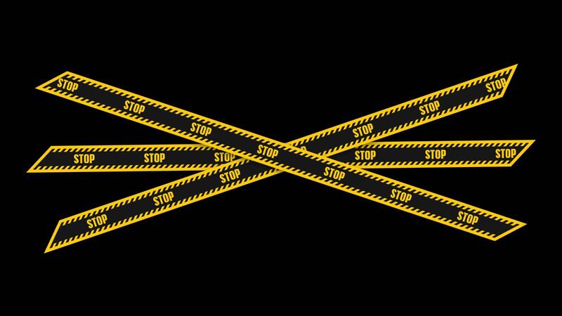 Animated yellow and black stop warning tapes crossing on transparent background. Moving caution lines with alert text. Symbol of restriction, prohibition, danger, and safety warning animation Pro Video