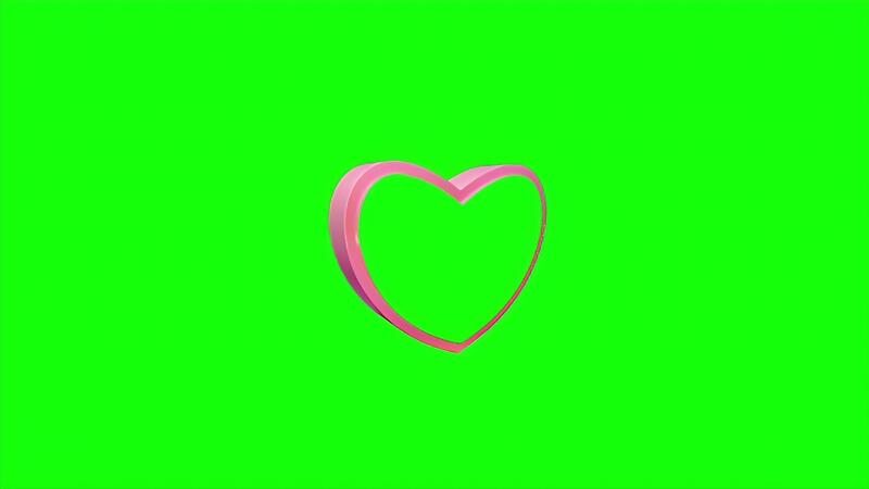 Animated 3D Pink Heart Shape Floating and Rotating on Green Screen Background Free Video