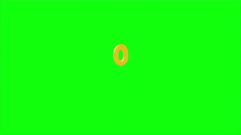 Yellow Balloon Number 0 Floating on Green Screen Background with Thin String Free Video