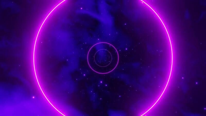 Glowing purple neon circle floating in deep cosmic fog with soft energy field. Abstract concept Pro Video