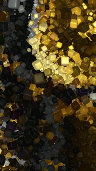 Forward motion burst of glossy cubes in mixed color palettes constructing a vibrant abstract backdrop with complex layering luminous highlights and energetic flow Pro Video