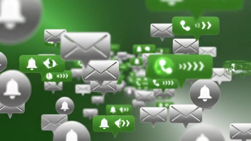 Get notified with dynamic floating email alerts, receive messages and reminders with modern notification bubbles on green and grey background Free Video