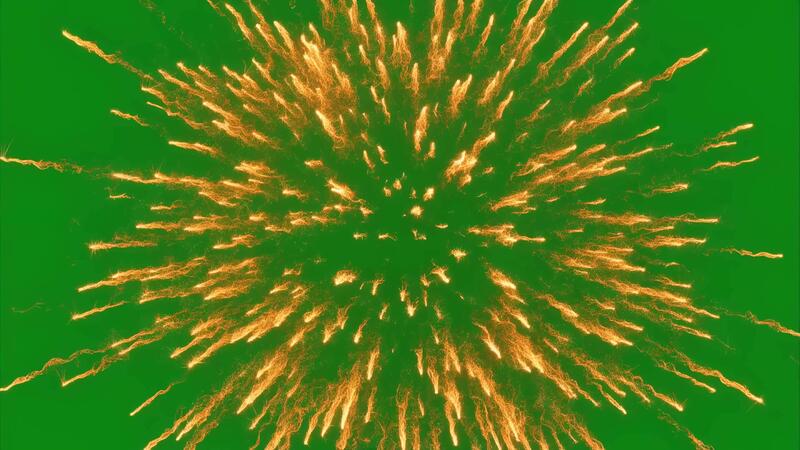 Exploding bright orange particles burst outwards in a spectacular supernova effect on a green screen background representing a cosmic explosion or a fiery detonation Free Video