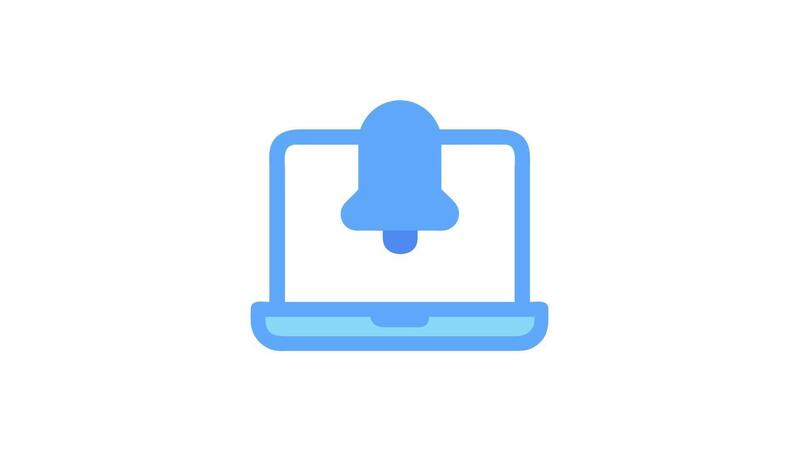 Laptop computer displaying notification bell icon on White Background Pro Video