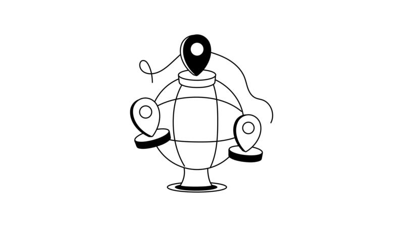 A globe with multiple location pins attached, meta location animated design Pro Video