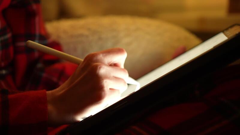 Creating digital art at home during cozy evening hours with focus on hand movements and technology Pro Video
