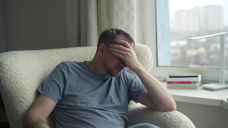 Man reflecting on his thoughts while sitting by a window in a cozy room during a cloudy afternoon Pro Video