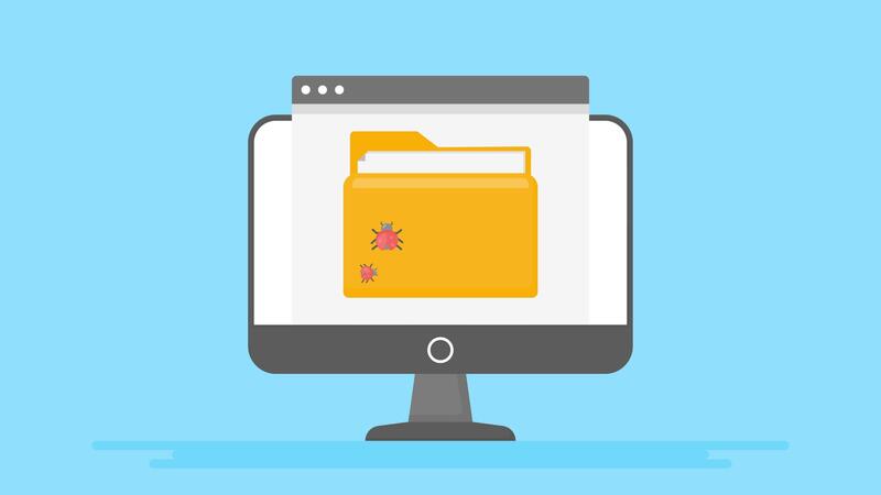 4K animation of computer screen with bugs on folder. Perfect for illustrating online security practices and precautions. Suitable for website cybersecurity background Pro Video