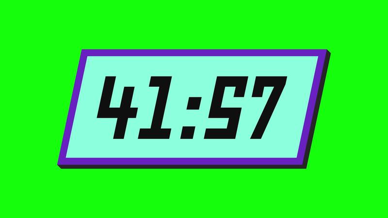 Digital countdown timer from 42 minute to 41 minute on a tilted rectangular display with a green background Free Video