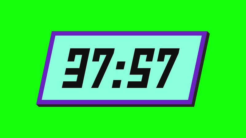 Digital countdown timer from 38 minute to 37 minute on a tilted rectangular display with a green background Free Video