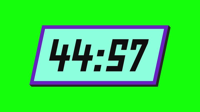 Digital countdown timer from 45 minute to 44 minute on a tilted rectangular display with a green background Free Video