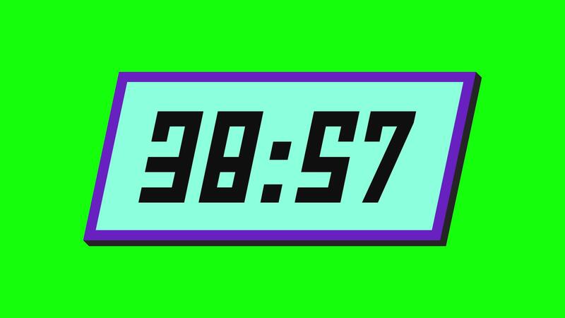 Digital countdown timer from 39 minute to 38 minute on a tilted rectangular display with a green background Free Video