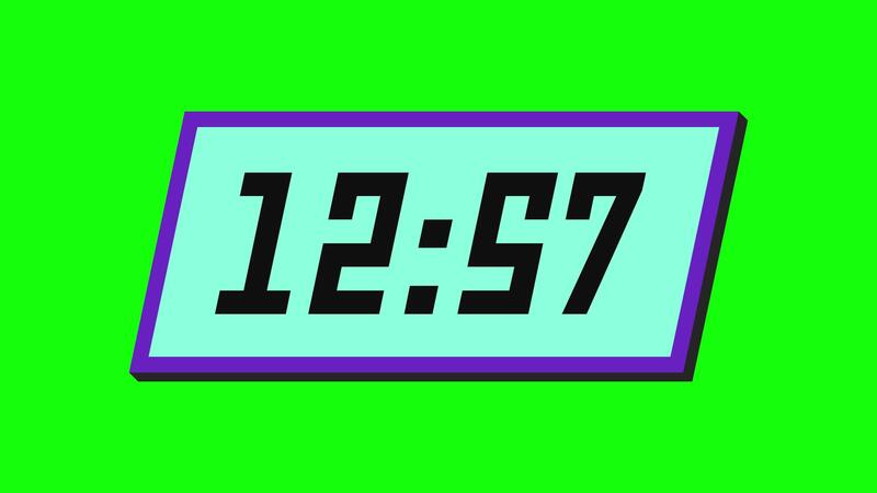 Digital countdown timer from 13 minute to 12 minute on a tilted rectangular display with a green background Free Video