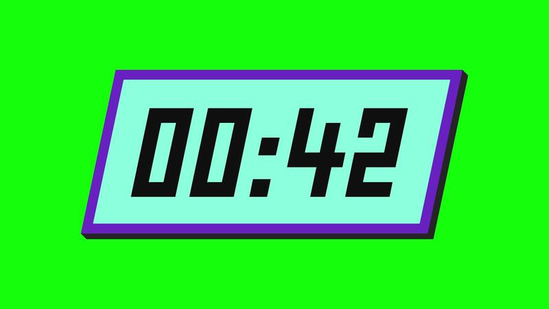 45 second neon digital countdown timer on a tilted rectangular display with a green background Free Video