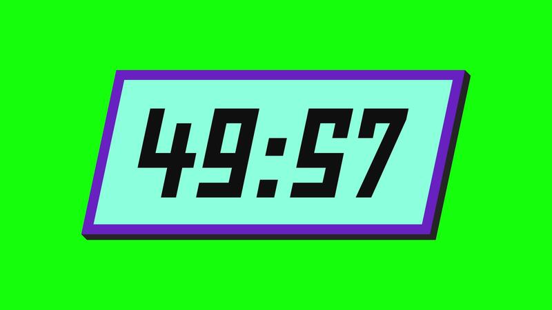 Digital countdown timer from 50 minute to 49 minute on a tilted rectangular display with a green background Free Video