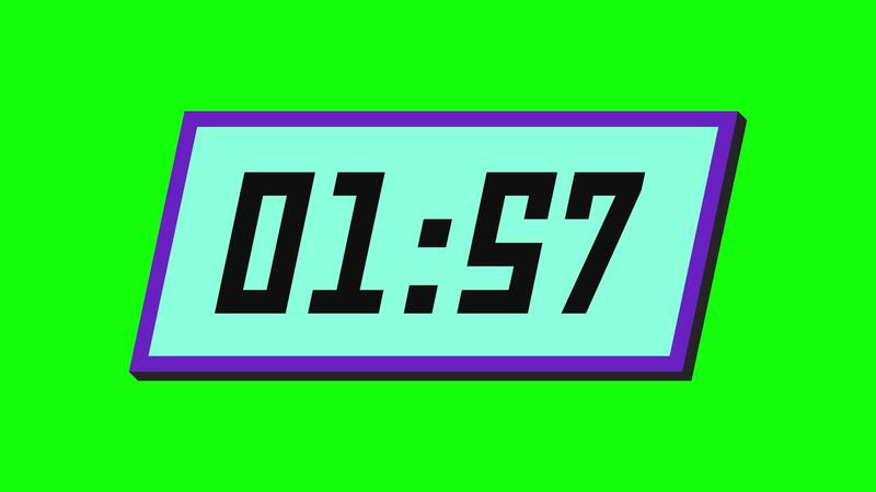 Digital countdown timer from 2 minute to 1 minute on a tilted rectangular display with a green background Free Video