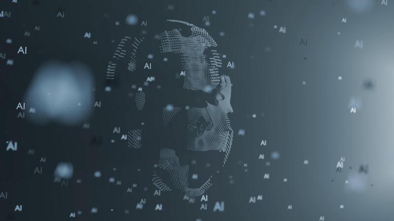 Wireframe Robot Head Scanning Through Dense Floating AI Signals in Cyberspace Pro Video
