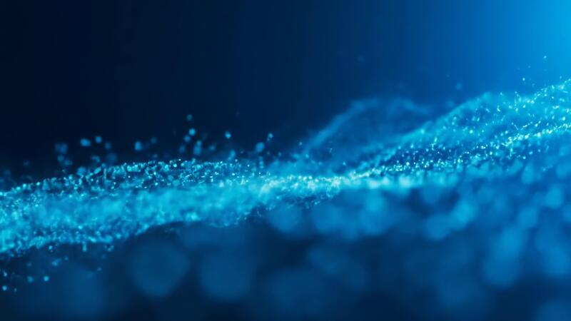 Dynamic particle wave motion with blue glowing abstract stream flow in deep space Free Video