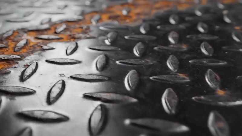 Close up of metal surface with raised oval pattern and rust showing through the surface layer Free Video
