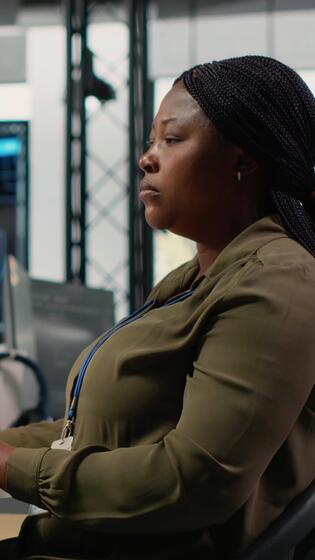 Vertical Engineering team in startup office work with artificial intelligence driving market innovation. Tech startup coworkers apply machine learning to optimize operations, camera B Pro Video