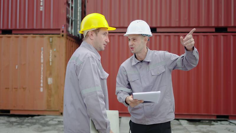 In container yard, the chief caucasian engineer confronts his team about the mistakes in their data file. He shares vital feedback while displaying visible anger and disappointment Pro Video