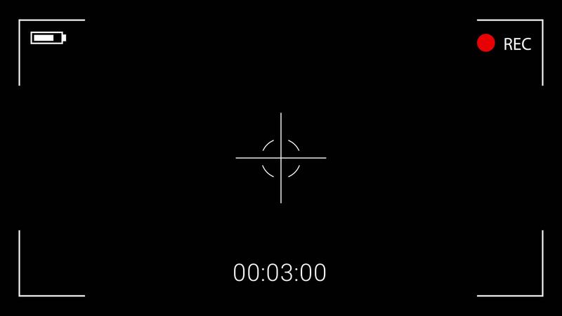 Digital camera screen displaying an active recording session with elapsed time, a 'REC' indicator, and a targeting reticle on a minimalist black background Pro Video