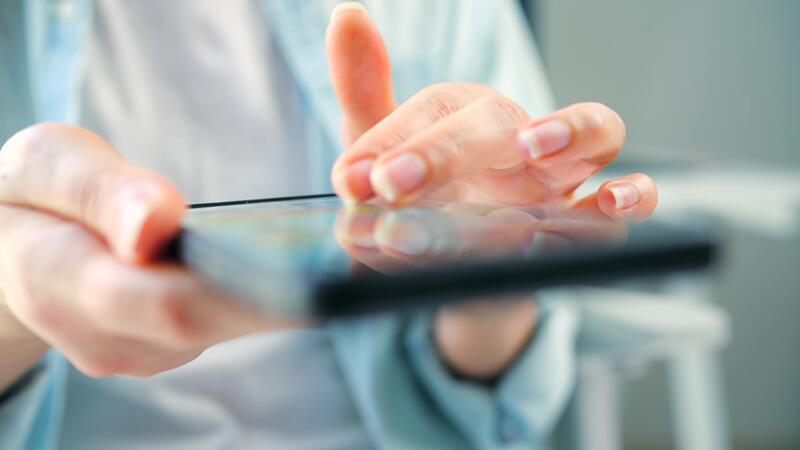 Woman chatting online on smartphone close up, typing text message, touching touchscreen keyboard, using messenger application. Pro Video