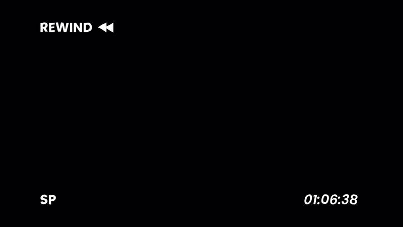 Retro VHS rewind playback overlay with analog static noise and timecode on black background creating dark nostalgic glitch mood in 4K Overlay Free Video