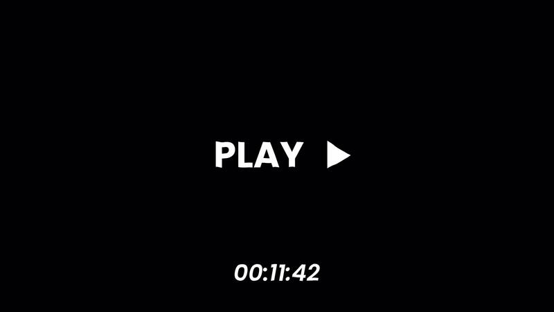 Retro VHS play overlay with bold play icon, analog static lines and timecode on black background creating dark nostalgic glitch mood in 4K Overlay Free Video