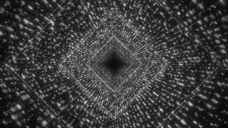 white color square shape 3d tunnel with appearing and disappearing dots modern design dark geometrical background Free Video