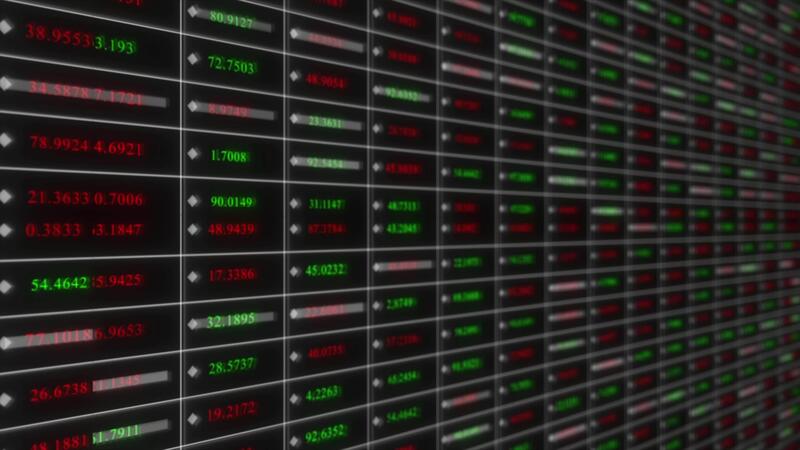 colourful stock command centre with dynamic profit and loss grid display showing live price scanner across global markets hi tech background Free Video