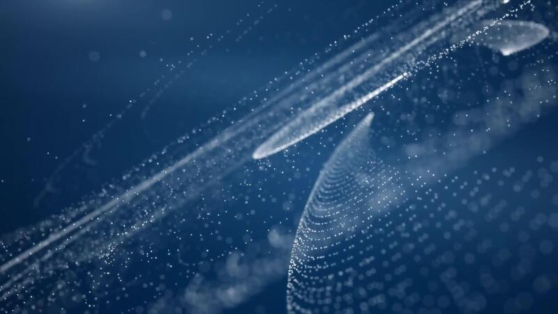 Flowing digital particle waves forming abstract data network. Free Video