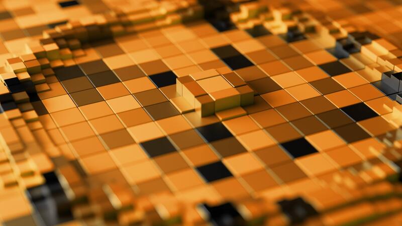Golden Pixelated Circular Motion Looping 3D Background. 3D rendering Pro Video