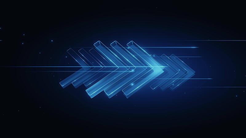 3D render Abstract blue glowing arrows moving right on dark background. Digital flow, data transfer, futuristic motion. Technology, speed, progress backdrop. Ideal for background. Pro Video