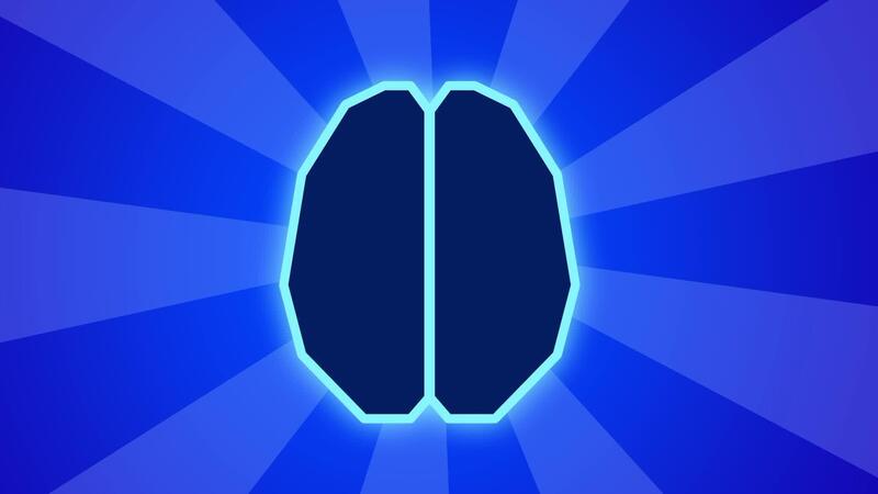 Displays a glowing stylized brain radiating outward blue beams, symbolizing cognitive processing, internal computation, and expanding conceptual system activity. Free Video