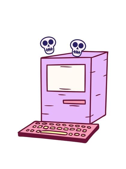 spinning skulls animation of hand drawn cartoon doodle of a computer and keyboard in bright glow color Pro Video
