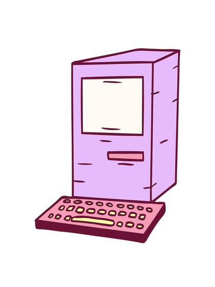 stretching up animation of hand drawn cartoon doodle of a computer and keyboard in bright glow color Pro Video