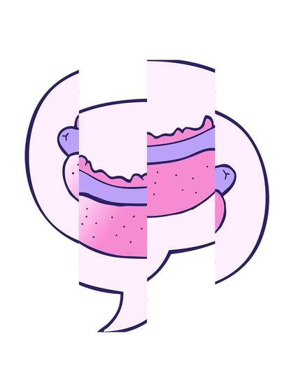 splitting motion animation of cartoon hotdog with speech bubble in smooth gradient style Pro Video