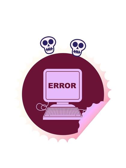 spinning skulls animation of computer error illustration circular peeling sticker in bright glow color Pro Video