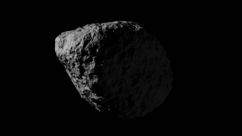 Looping 3D animation of a space asteroid rotation. Cyclic slow rotation of an object in space. With Alpha Channel. Pro Video
