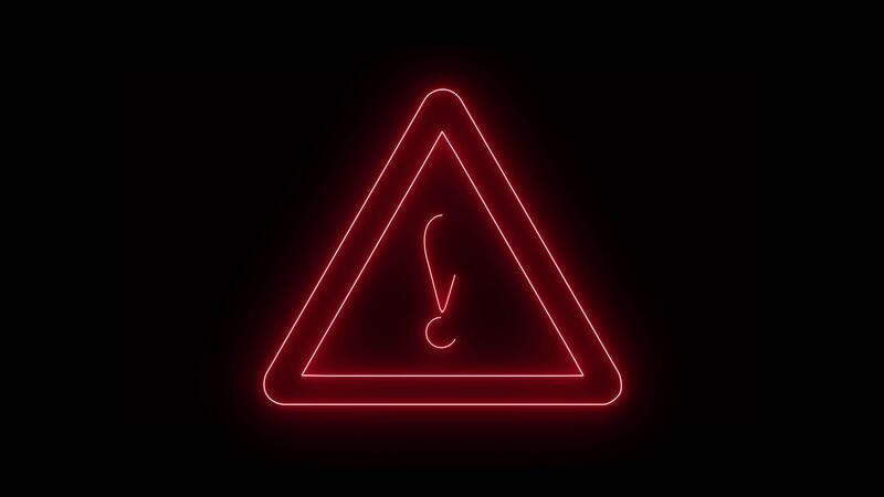 Neon red exclamation mark inside a glowing warning triangle on a black background, presenting a modern neon style hazard sign for digital interfaces and graphic design projects Pro Video