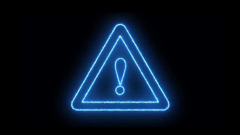 lowing neon blue warning triangle with an exclamation mark on a dark background, perfect for alerts, notifications, and futuristic design themes Pro Video